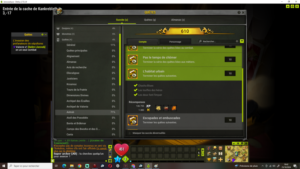 Cette page est dédié à la réussite des Astrub Succès Dofus