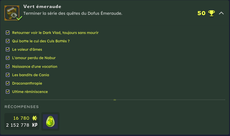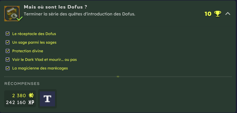 Cette page est dédié à la réussite des Succès Histoire Principale du jeu Dofus